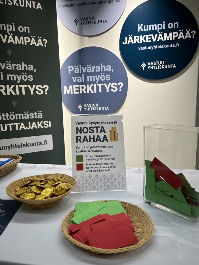 Helsingin kirjamessuilla ihmisiltä kysyttiin, kumpi on järkevämpi tapa käyttää verovaroja: Arpoa rahapalkintoja ihmisille, jotka liikkuvat vai maksaa lääkäreille, kun he hoitavat ihmisiä, jotka eivät ole liikkuneet.